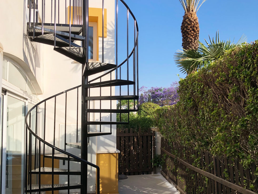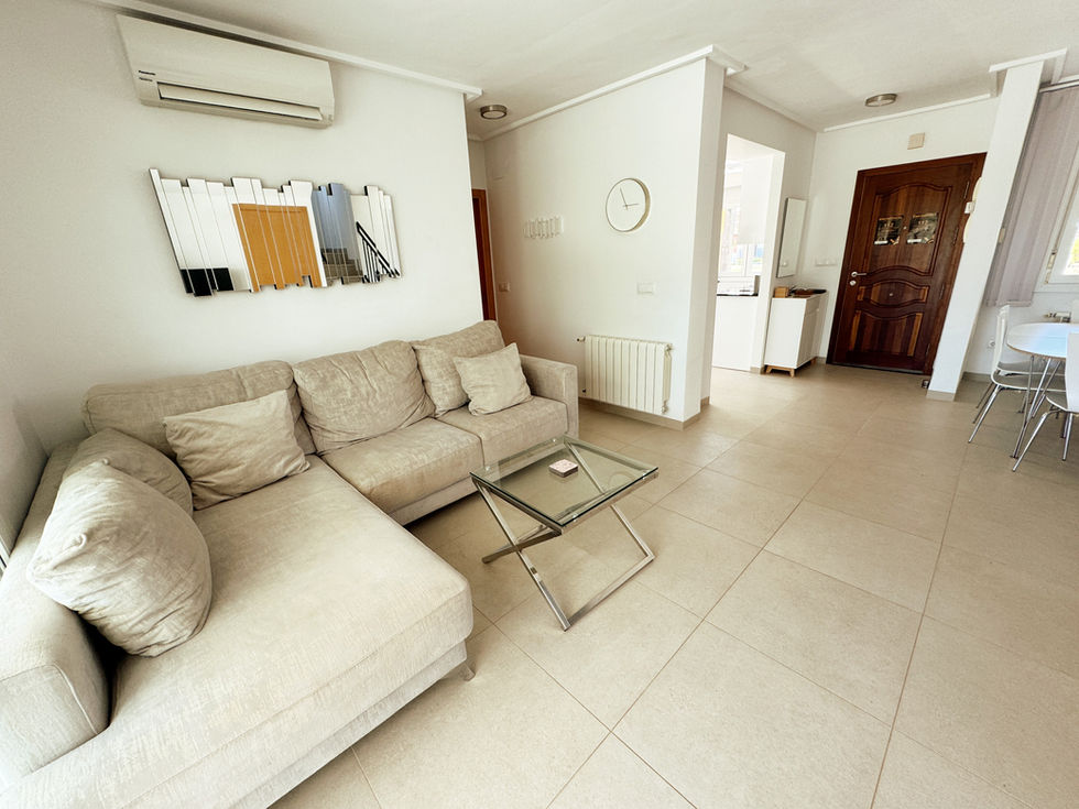 The main bedroom leads out to a terrace which overlooks the plaza to the front and a second terrace which has views of the golf course at the rear. An awning can be wound out on this terrace to create additional shade. The second bedroom has access to the terrace overlooking the plaza.